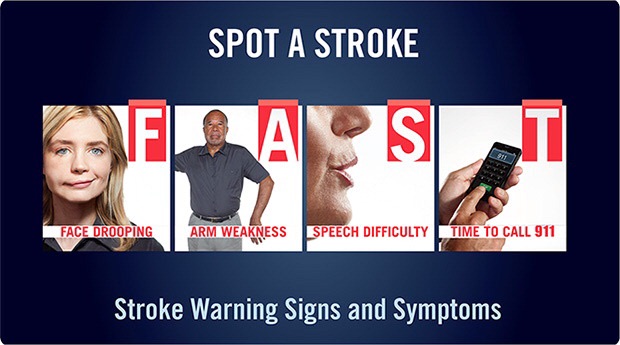 F.A.S.T. stands for F: face drooping; A: arm weakness; S: speech difficulty; T: time to call 911. When you don't know what to look for, and most Americans don't, you cannot save a life. YOU CAN CHANGE THAT! Learn the 3 symptoms of stroke and then remember it is time to call 911.